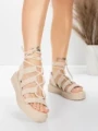 Sandały damskie na niskim obcasie 5H79 Beżowy | Mei