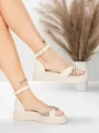 Sandały damskie na niskim obcasie 5H81 Beżowy | Mei