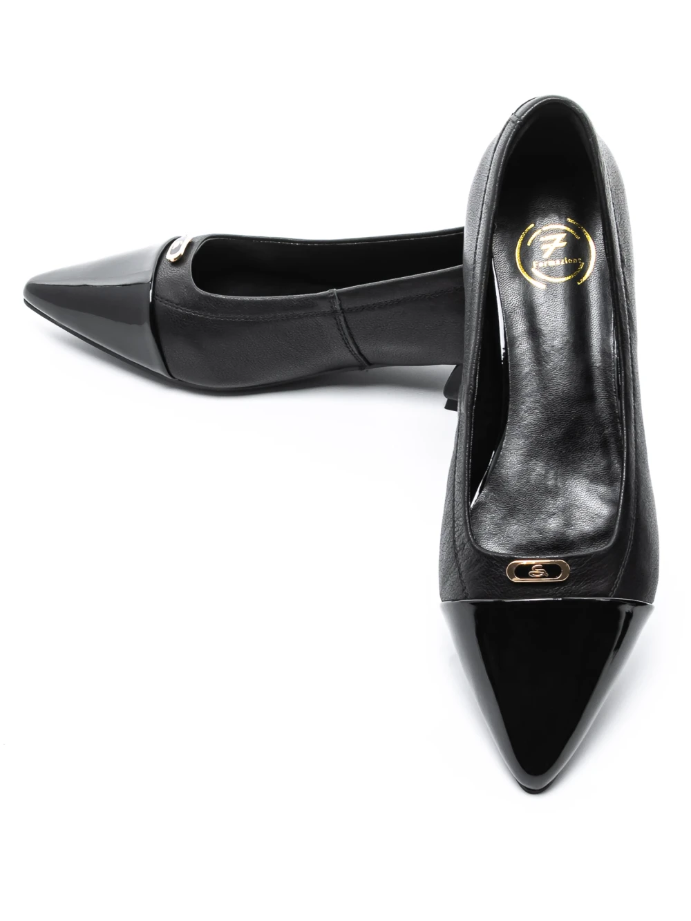 Pantofi cu Toc gros D26-103 Negru | Formazione