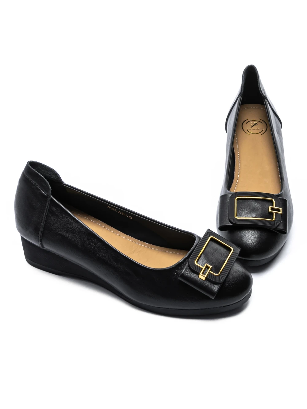 Damskie buty ze skóry naturalnej 52AD8 Czarny | Pantoful