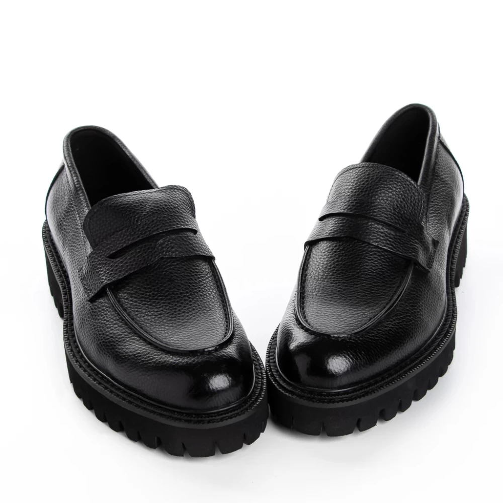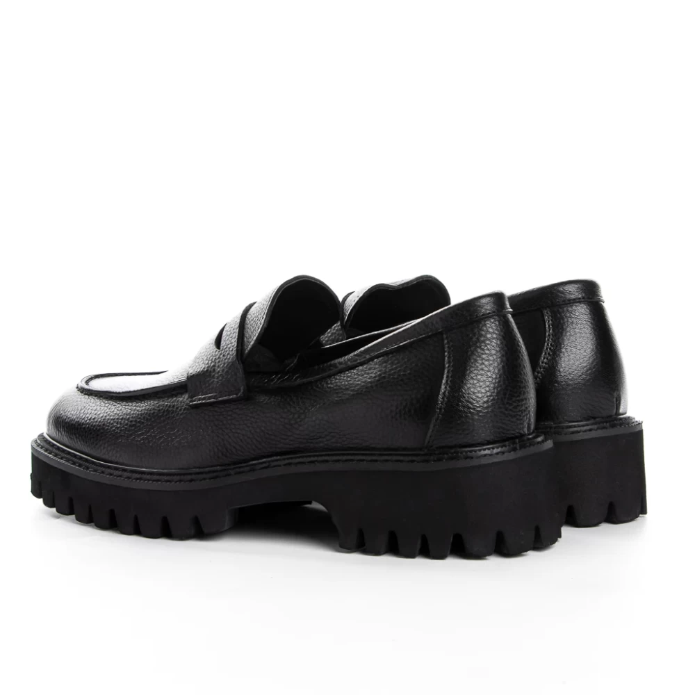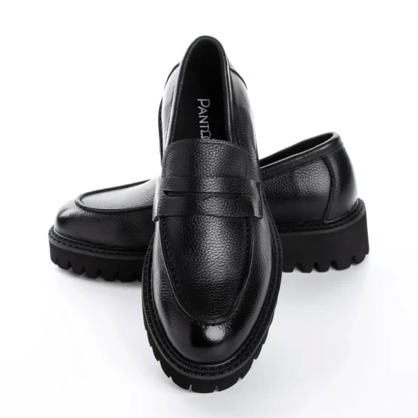 Mokasyny męskie ze skóry naturalnej 5NXE23 Czarny | Pantoful