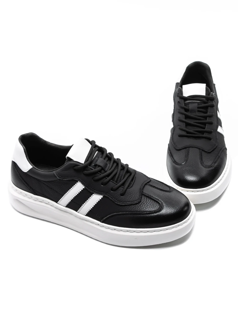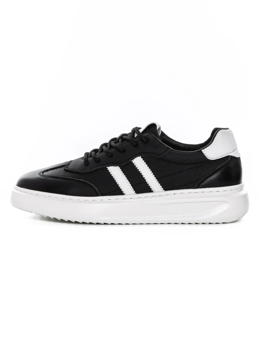Męskie buty sportowe wykonane ze skóry naturalnej 02-208 Czarny-Biały | Advancer