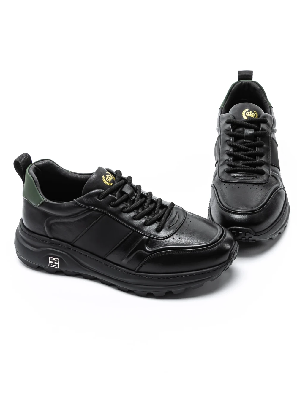 Męskie buty sportowe wykonane ze skóry naturalnej 302 Czarny-Zielony | Advancer