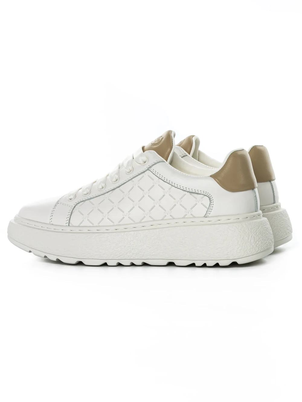 Męskie buty sportowe wykonane ze skóry naturalnej 5302 Biały-Brzoskwiniowy | Advancer