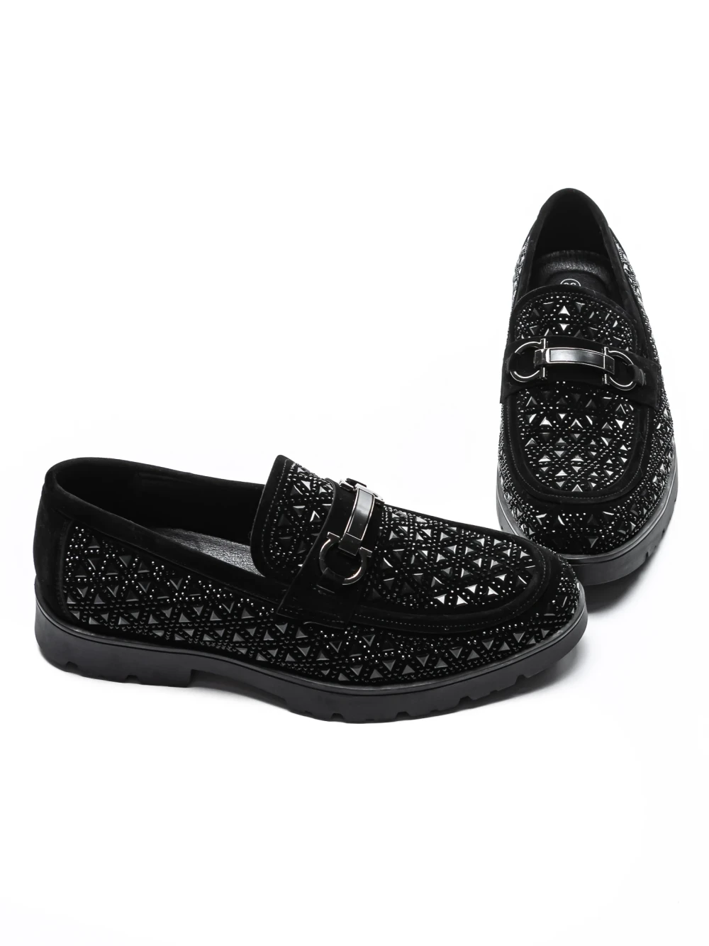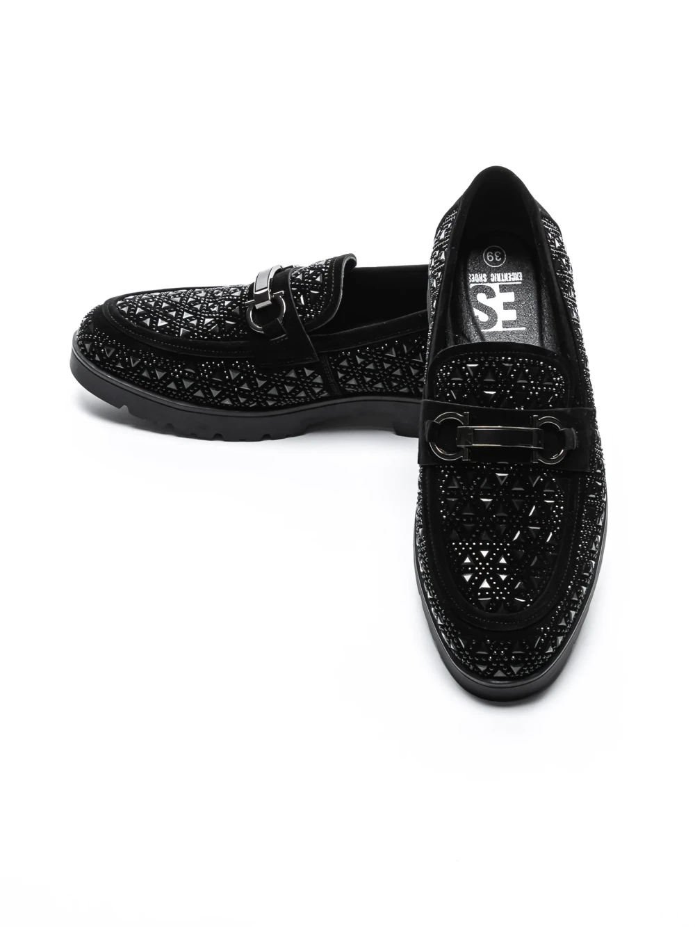 Mokasyny męskie ze skóry naturalnej 5NXE78 Czarny | Excentric Shoes
