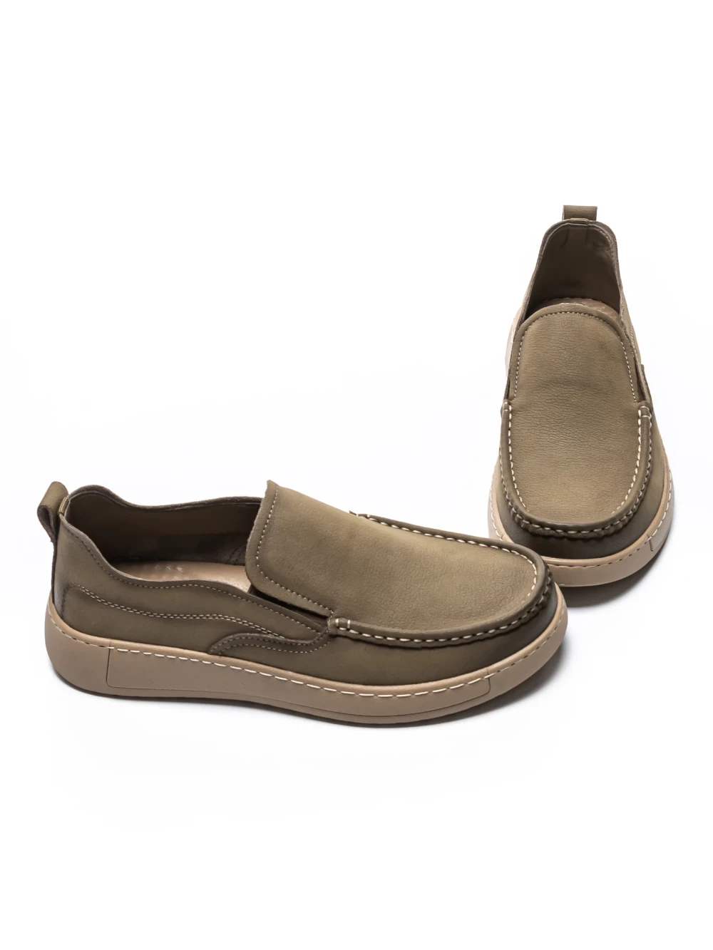 Mokasyny męskie ze skóry naturalnej A90006 Khaki | Advancer