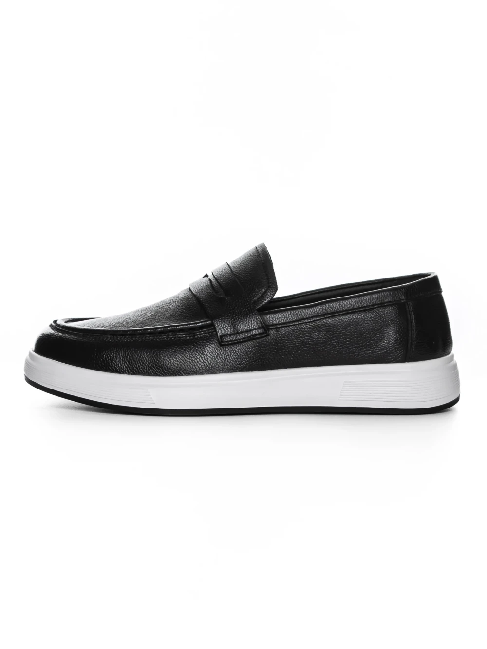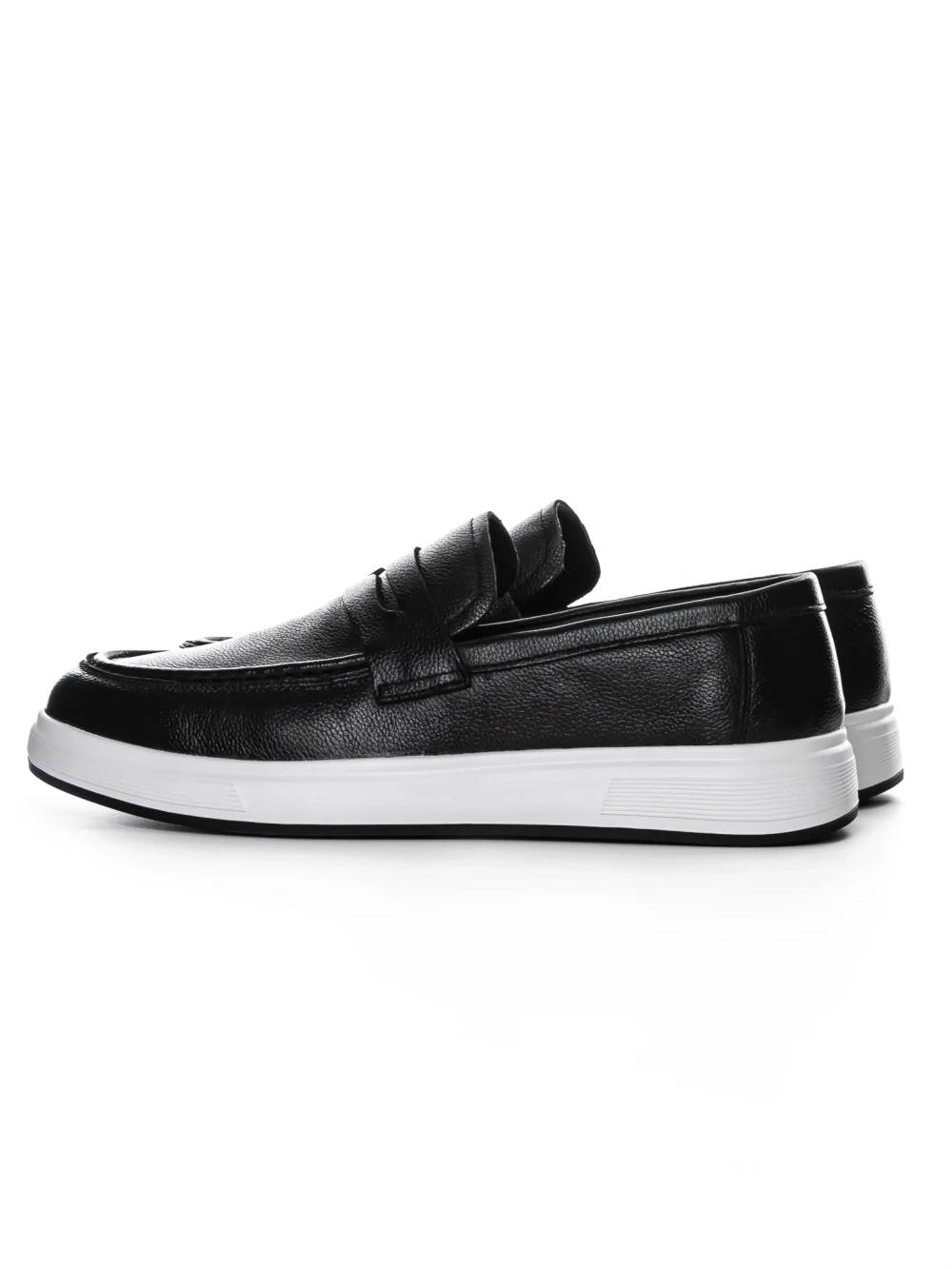 Mokasyny męskie ze skóry naturalnej 5NXE19 Czarny | Pantoful