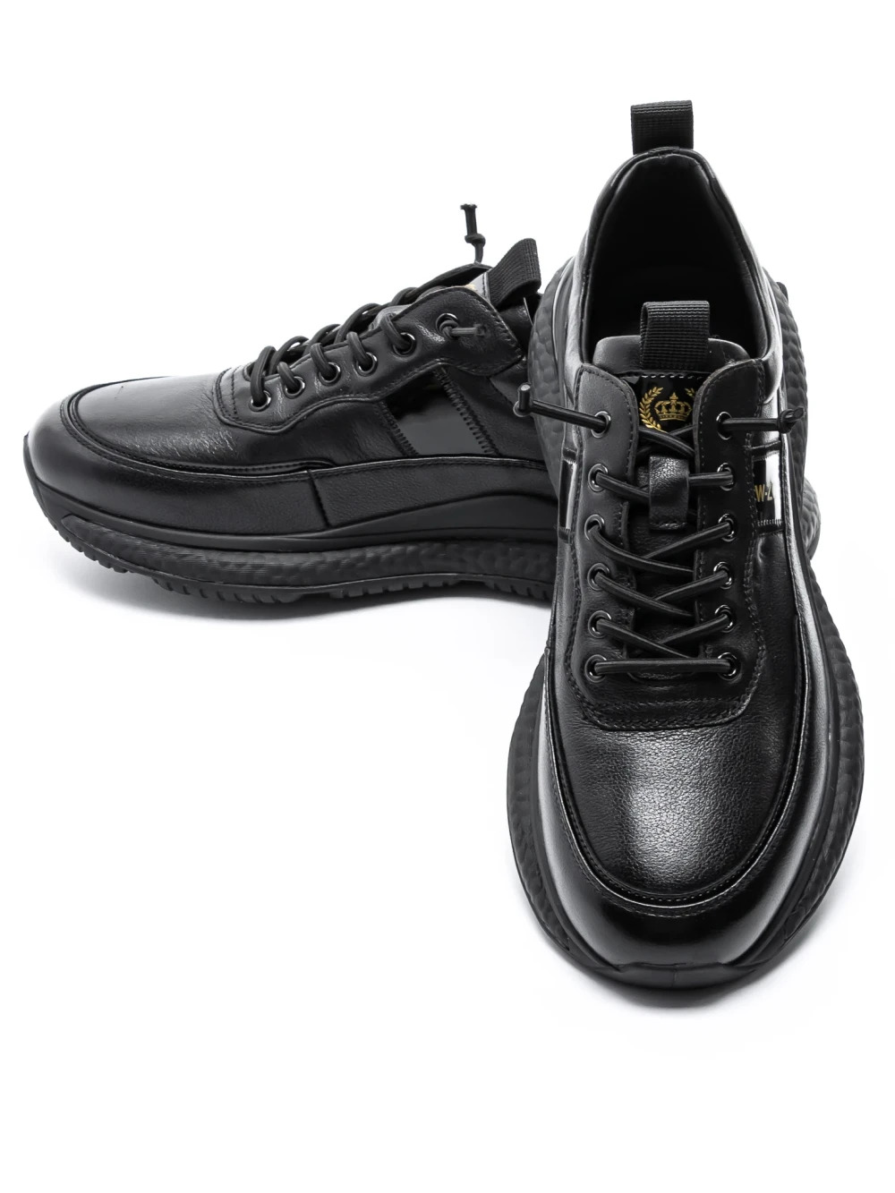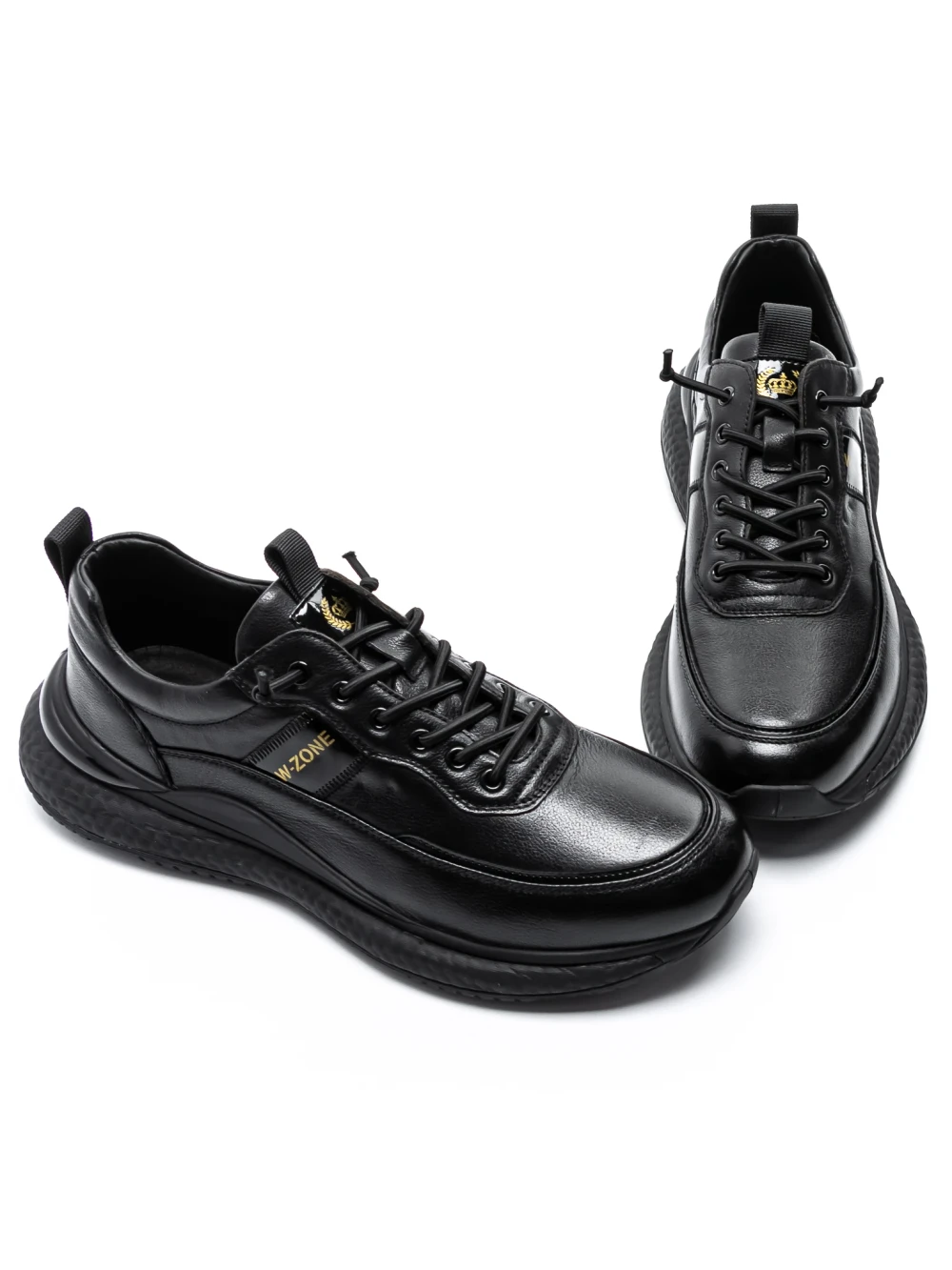 męskie buty sportowe wykonane ze skóry naturalnej T15-3 Czarny | Advancer
