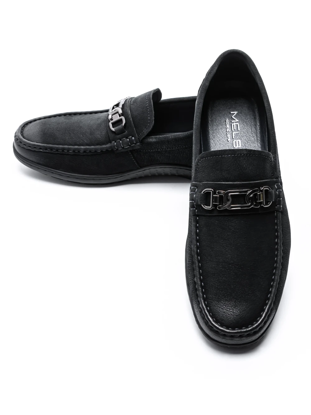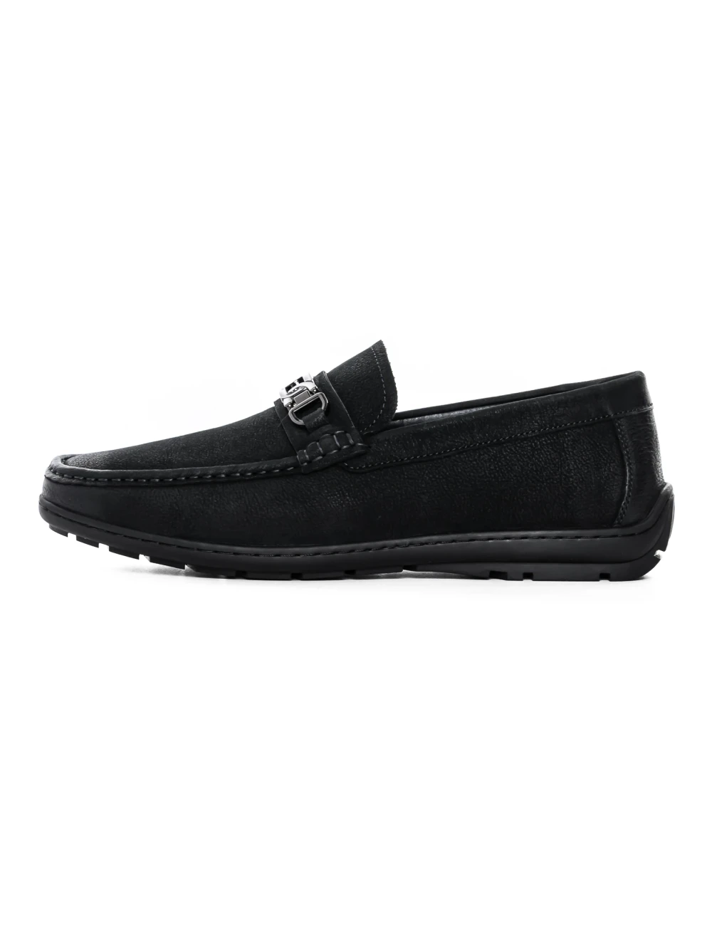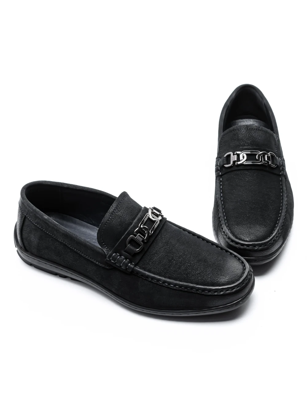Mokasyny męskie ze skóry naturalnej 02-203 Czarny | Advancer