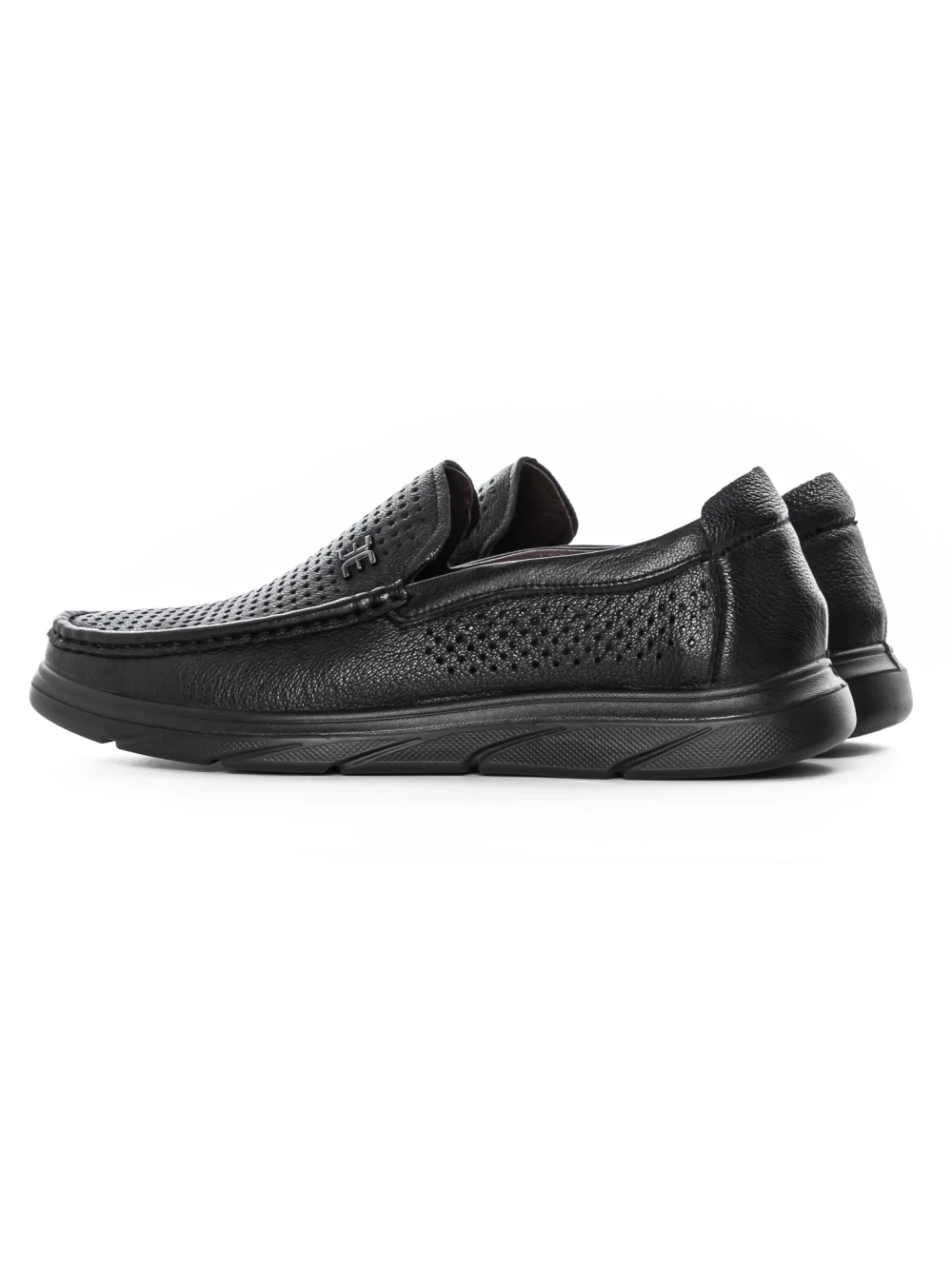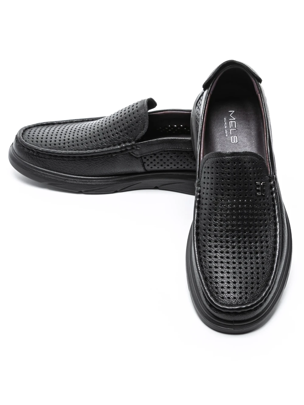 Mokasyny męskie ze skóry naturalnej 5NXE3 Czarny | Mei