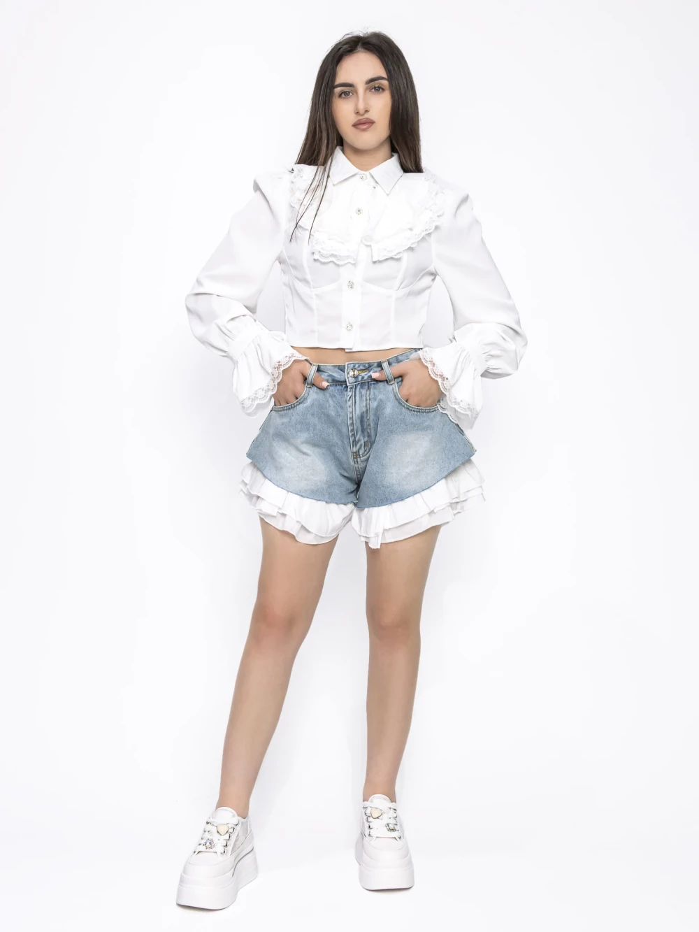 Damskie krótkie jeansy S22033 Niebieski | Kikiriki