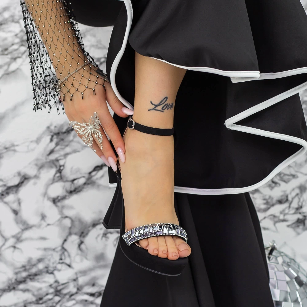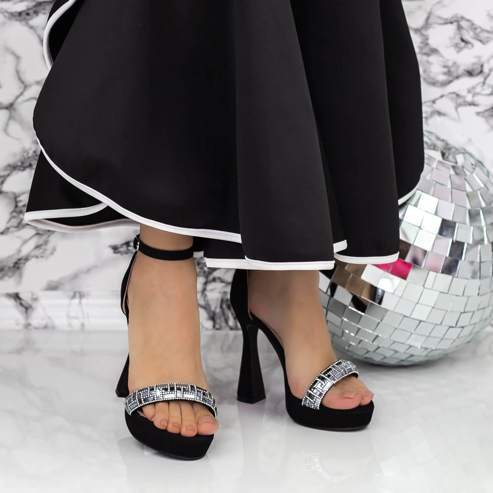 Sandały na cienkim obcasie i platformie 2YXD80 Czarny | Mei